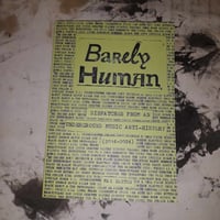 BARELY HUMAN is an underground music anti-history that has taken many forms since 2015: a series of print essays, a podcast series, typewritten zines and bootleg mixtapes. This book collects all the works written over this ten year period, reassembled, re-edited and rearranged to draw a pseudo-lineage from dirty blues, subversive folk, sixties counterculture and proto-punk, through to the punk and post-punk movements, and finally, to the splintered subcultures of the contemporary DIY underground.