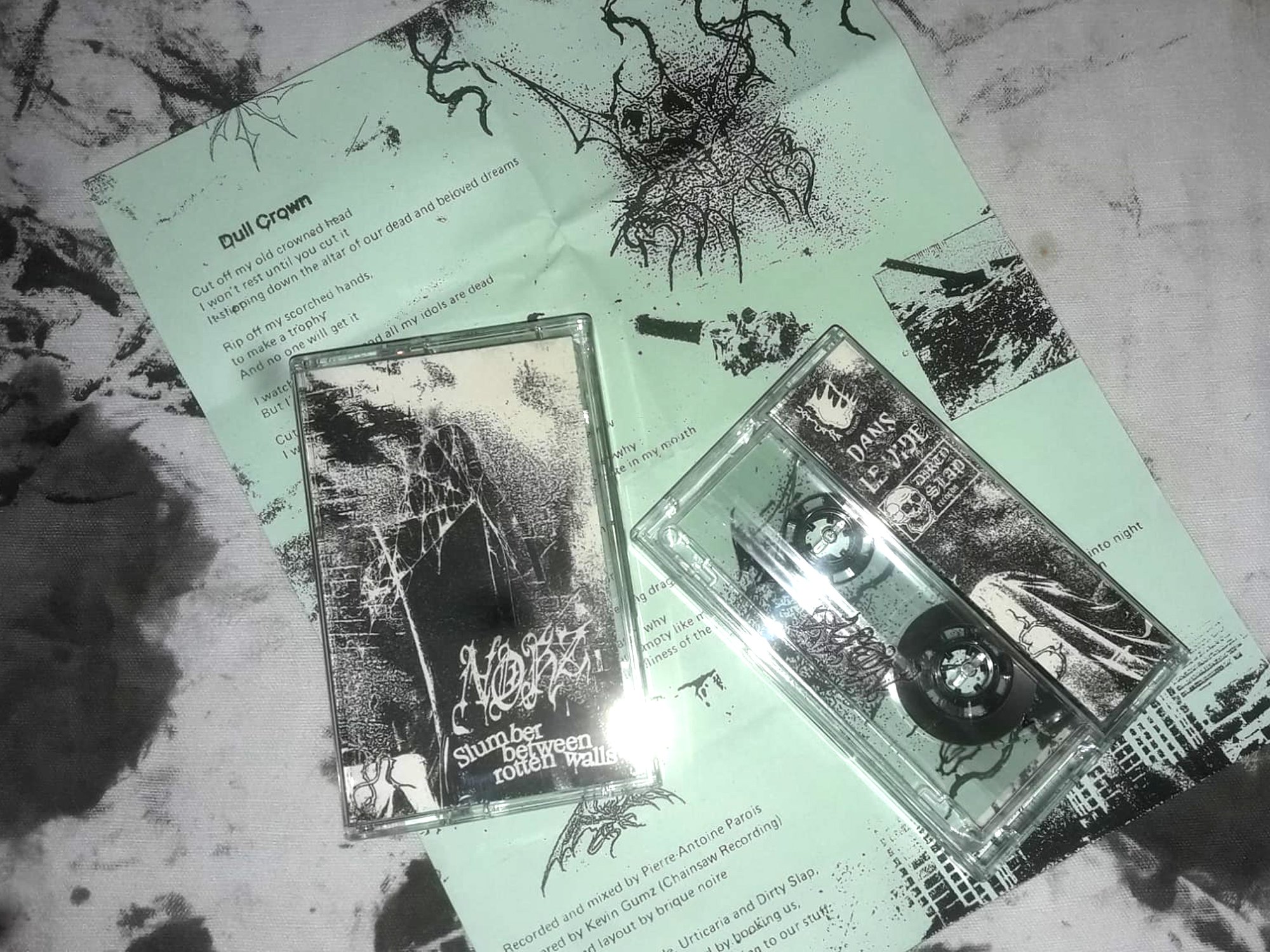 "With screeching, blown-out vocals hovering over guitar feedback and stomp-inducing drum parts, Toulouse, France NOHZ’s first full length feels equally playful and sinister, borrowing from hardcore punk acts such as HOAX as well as early Scandinavian black metal (think DARKTHRONE), not unlike what RAW MOON did back in 2010. Compared to their 2022 demo, Slumber Between Rotten Walls features more experimentation with chaotic noise layers and nasty mid-tempo parts to roughhouse to ; a sure-fire way to leave you all wired and out of breath, wanting to spin that LP all over again."